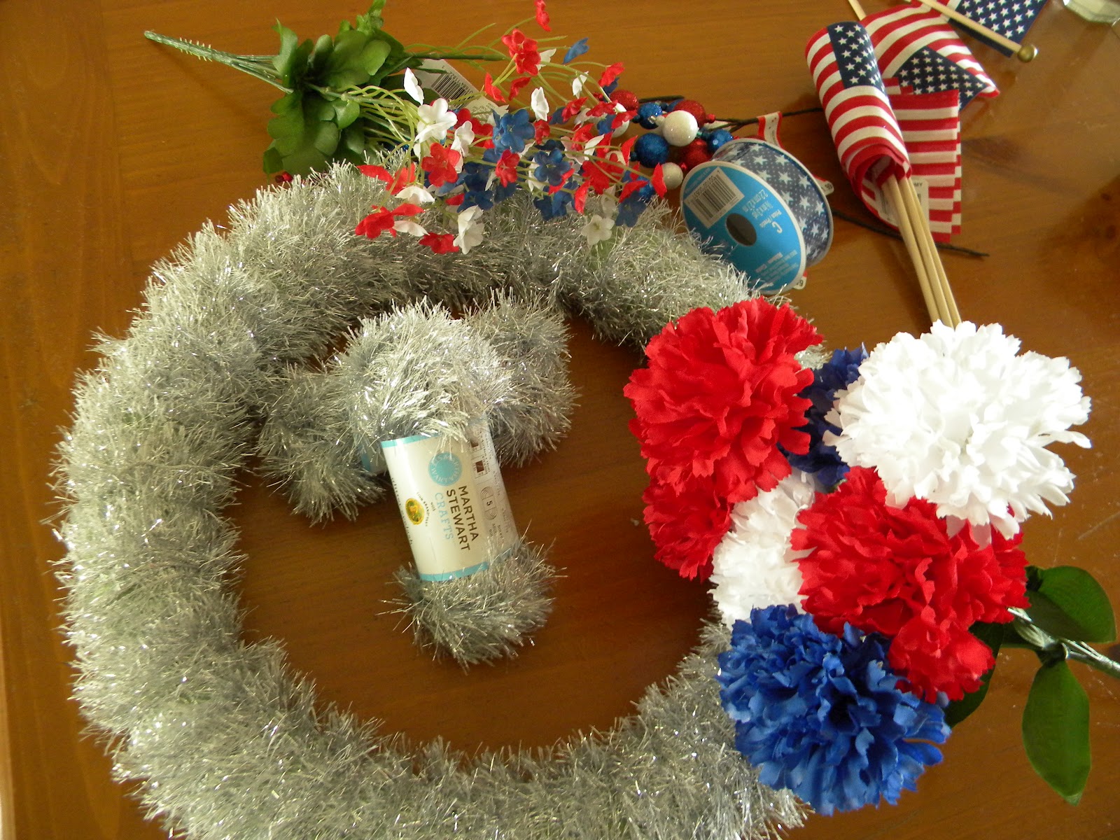 I am truly not a crafty person, but I was happy with my wreath. It took me only an hour to make it. All the supplies I bought cost about $30. I plan to keep it out for Memorial Day through July 4th.