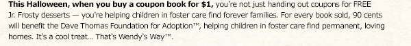 Every year I purchase a few of these coupon books to hand out to family and other children around halloween. Who doesn’t love a FROSTY??? They are the perfect treat and a great way to give to others while also giving back to a much needed organization.