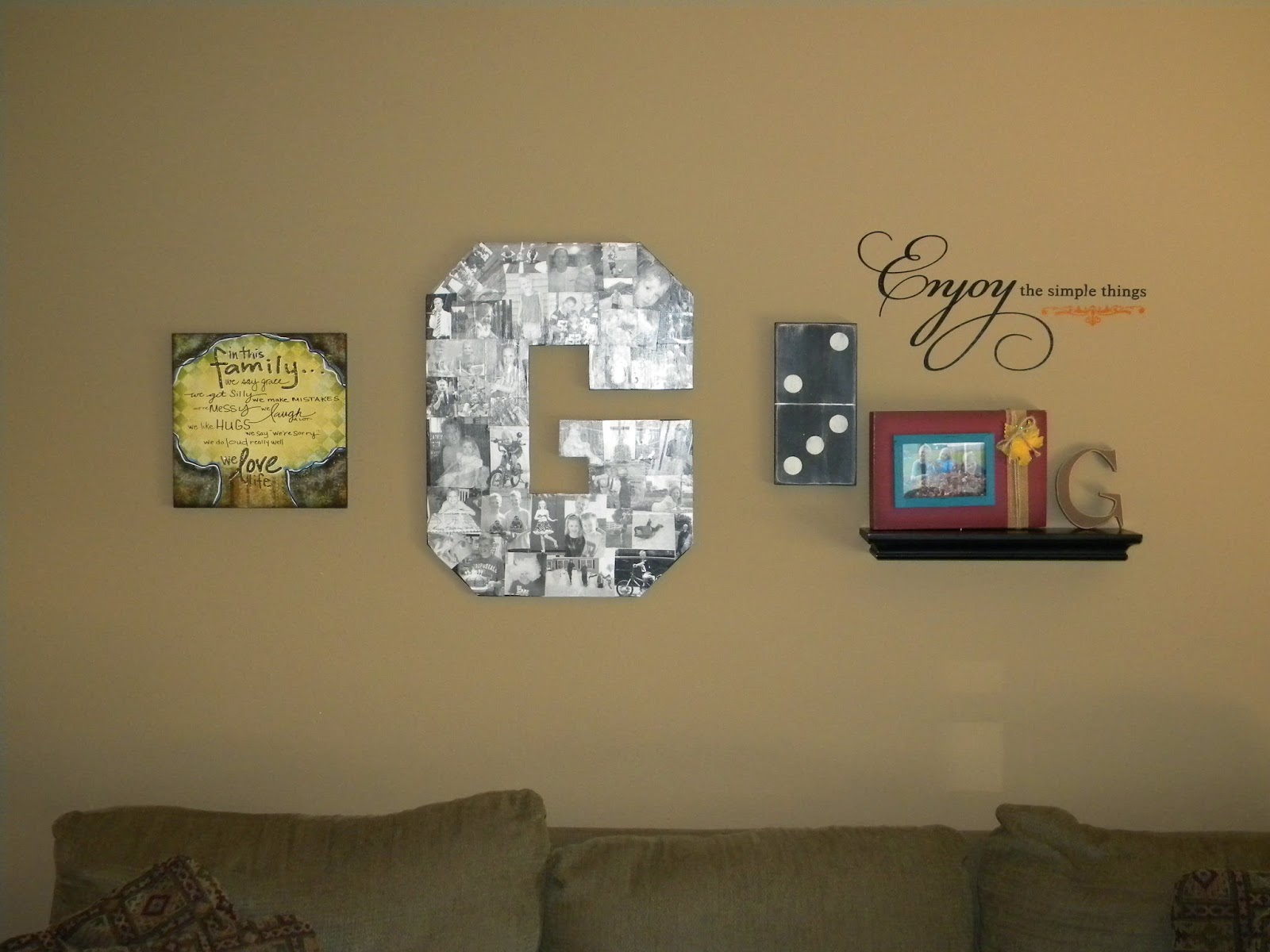 I have been so anxious to get this “G” and other things hung on our living room wall.