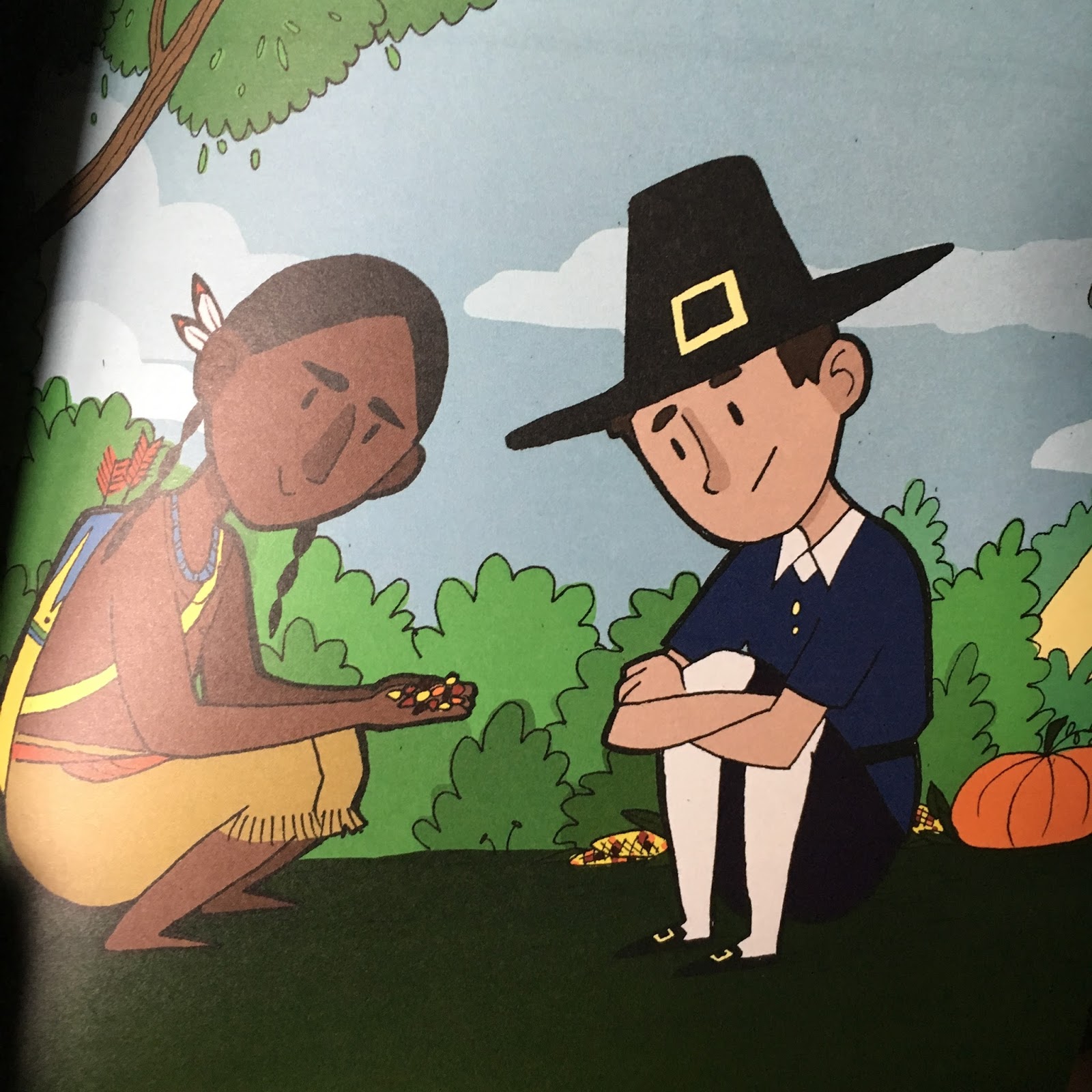 The book begins in England and explains the journey to America. The harsh conditions that the settlers had to endure as well as limited supplies were something I had never thought of even though I have heard this part of our history many times. Other parts were familiar, including how the Native Americans assisted the settlers with growing crops and fishing. Of course, the famous thanksgiving meal is mentioned as well as how the settler’s dressed, their schooling, religion, and what kids did for fun. This book offers a comprehensive look into this historical period of time.