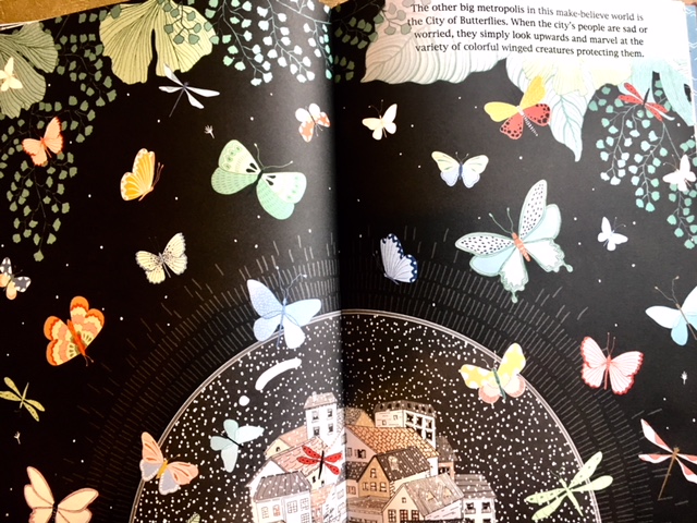 My favorite page shared a sky full of butterflies that when we are sad, we can look up into the sky and be amazed at the variety of colorful butterflies protecting us. I felt calm just by reading this book to myself. I can’t imagine how much a child would love reading this and looking at the pages full of make-believe.